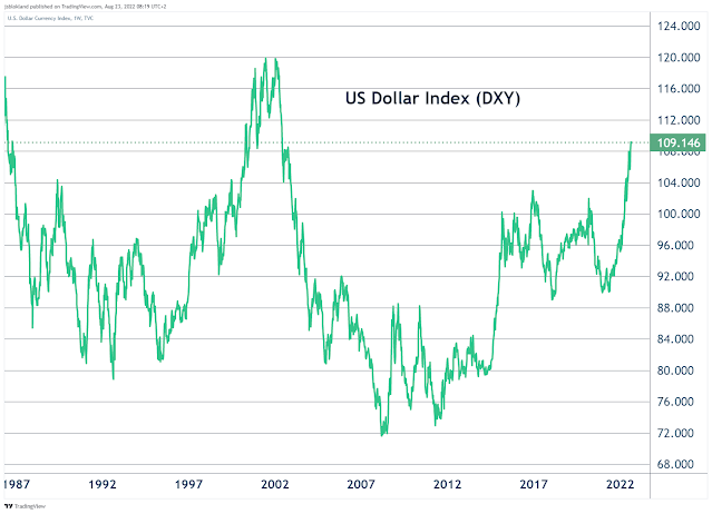 The USD is spiking again, with the US Dollar Index reaching its highest level in 20 years.